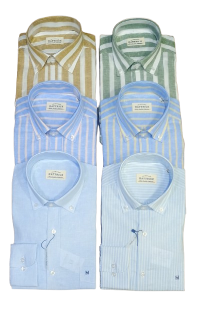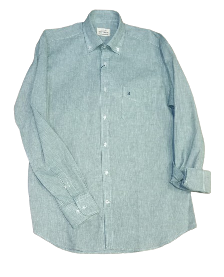 Disponible en liso en tres colores con posibilidad de cuello en mao en blanco, de manga larga, botones en el cuello y bolsillo.