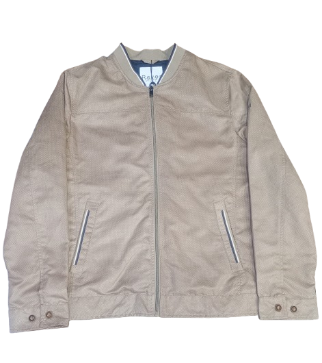 Cazadora de Rever imitación a ante, con cuello universitario y cierre delantero de cremallera.
