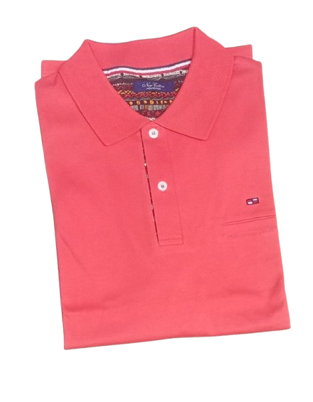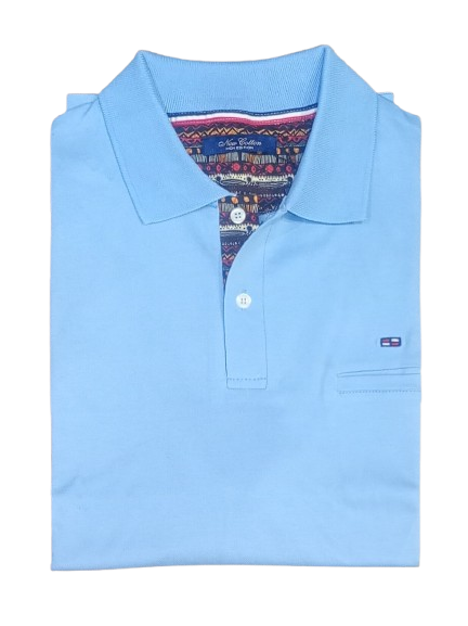 Polo liso New Cotton manga corta con bolsillo y detalle de tela en la tapeta.